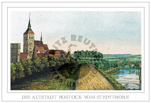 Die Altstadt Rostock vom Steinthore. Kolorierte Lithographie aus Lisch.