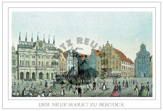 Der neue Markt zu Rostock. Kolorierte Lithographie aus Lisch.