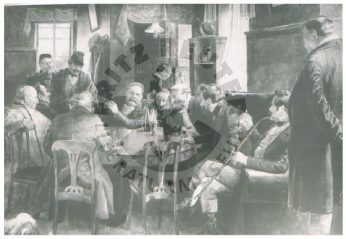 "Ick will jug vertellen" - Fritz Reuter am Stammtisch in Neubrandenburg. Kopie nach Johann Bahr.