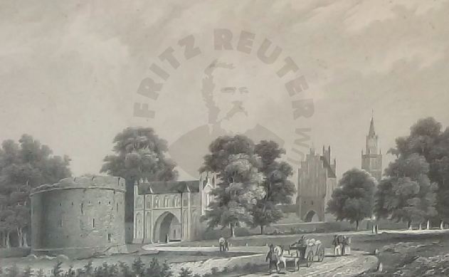 Das Friedländer Thor zu Neubrandenburg. Stahlstich von B. S. Berendsohn, Hamburg.
