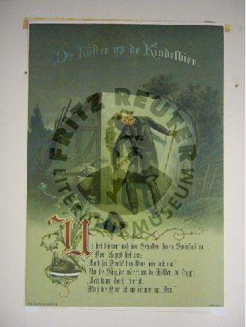 Illustrationen zu "Läuschen un Rimels". De Köster up de Kindelbier. Lithographie von C. Hacker.