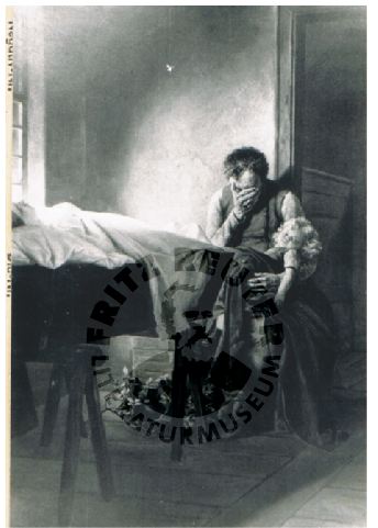 Ut mine Stromtid I - Hawermann am Sarge seiner Frau. Kopie des Bildes von C. Beckmann.