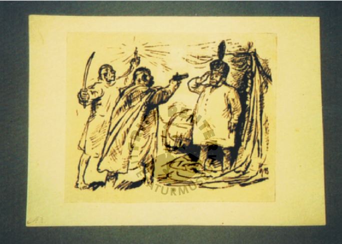 Franzosentid - Bonswar mon colonel. Pinselzeichnung von G. Büsemeyer um 1950.